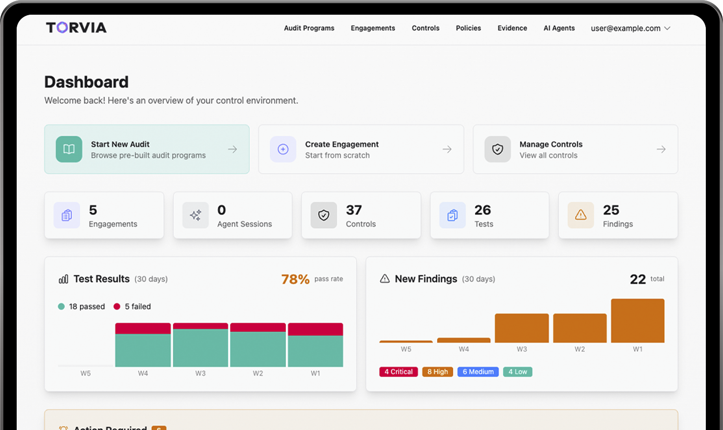 Torvia is led by a team of audit practitioners and technologists with over 70 years of combined experience in audit, risk assurance, and enterprise software. Our founders have held executive roles at top national and global firms, scaling practices from startup-size to hundreds of professionals and hundreds of millions in revenue. With advanced degrees in business and law and a proven track record building platforms used by thousands, we know audit—and we know how to build technology that works.